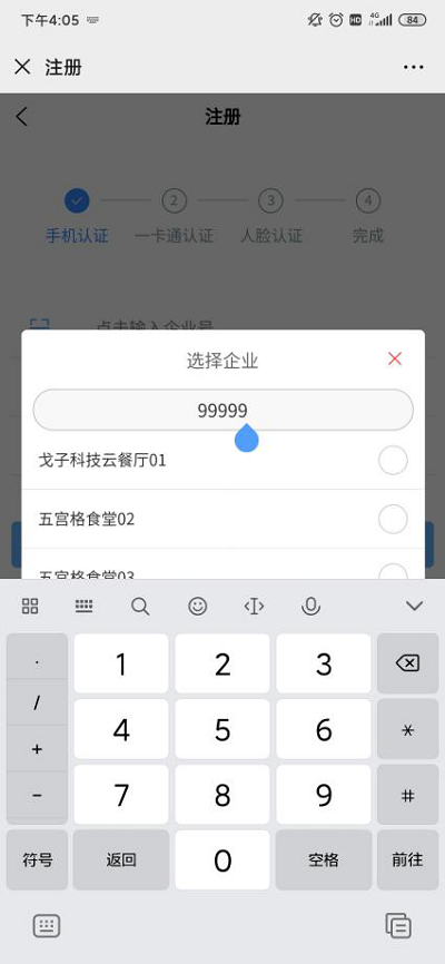 ①輸入企業(yè)號,選擇要消費的食堂