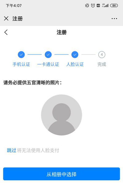 ③點擊“上傳”按鈕,人臉將綁定一卡通賬號,點擊“重新”則重選照片