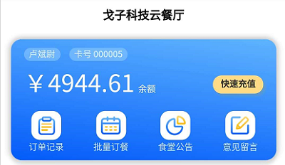②點(diǎn)擊“快速充值”按鈕,可進(jìn)入現(xiàn)場(chǎng)充值飯卡頁(yè)面