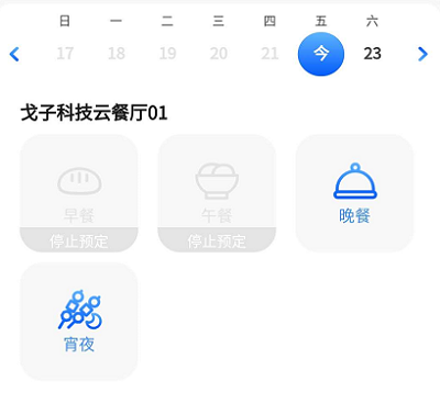 ③當(dāng)餐別顯示“停止預(yù)定”時(shí),用戶無(wú)法在進(jìn)行預(yù)訂。