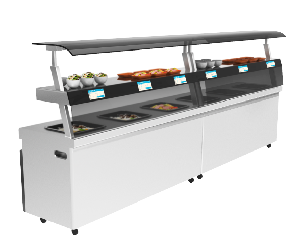智能備餐保溫臺通過內置的RFID裝置,結合自助結算臺,完成了攝入菜品信息的數據采集與個人身份的綁定,為健康飲食數據,創造了更多可能,同時量化的出品、售賣也為就餐預測、生產計劃和原料反算提供了數據依據,能有效減少浪費,實現精準備餐。