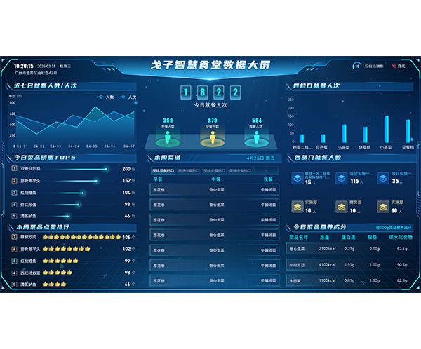 戈子科技智慧食堂數(shù)據(jù)大屏智能管理系統(tǒng),通過人臉識別技術(shù)和信息化管理系統(tǒng)搭配智能設(shè)備,實(shí)現(xiàn)智慧食堂、門禁、后廚等多板塊管理。用戶可以通過數(shù)據(jù)大屏實(shí)時查看消費(fèi)明細(xì)、就餐營養(yǎng)狀況,系統(tǒng)管理者收集多維度數(shù)據(jù)分析,助力餐飲管理優(yōu)化,推進(jìn)餐飲數(shù)字化進(jìn)程。